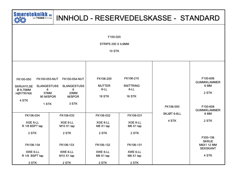 Reserverdelskasser og smørekit